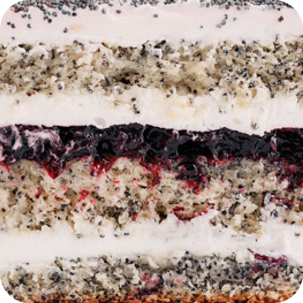 Маковый бисквит, сливочно-творожный крем, черная смородина