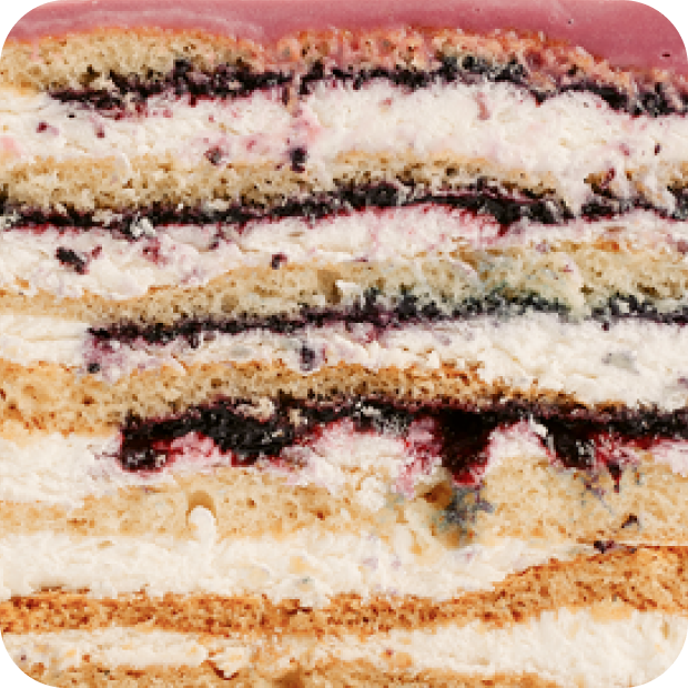 Медовый бисквит, воздушный сливочно-сметанный крем, черника